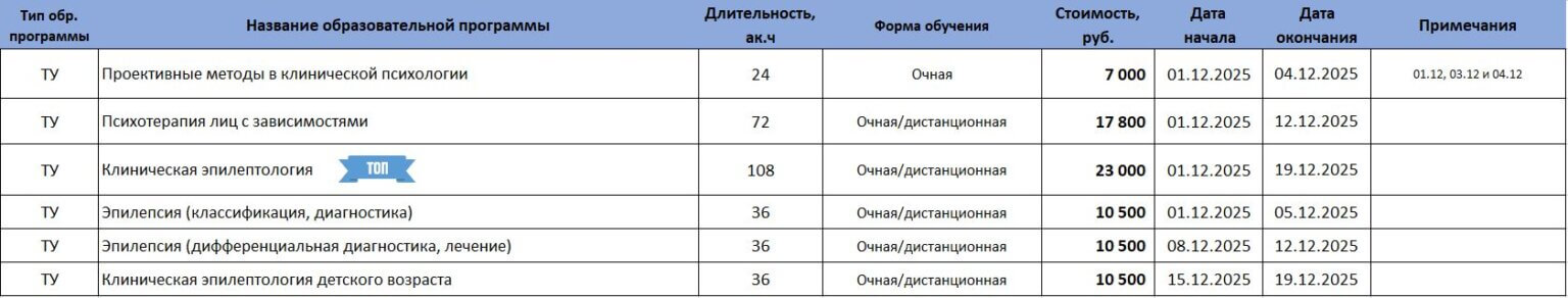 *Многие циклы проходят дистанционно (вебинары). Пожалуйста, уточняйте информацию по телефону.